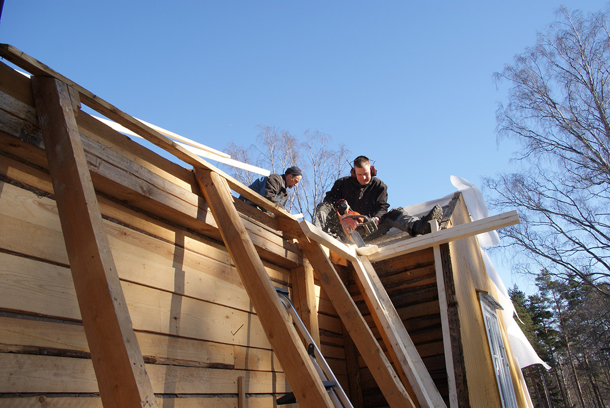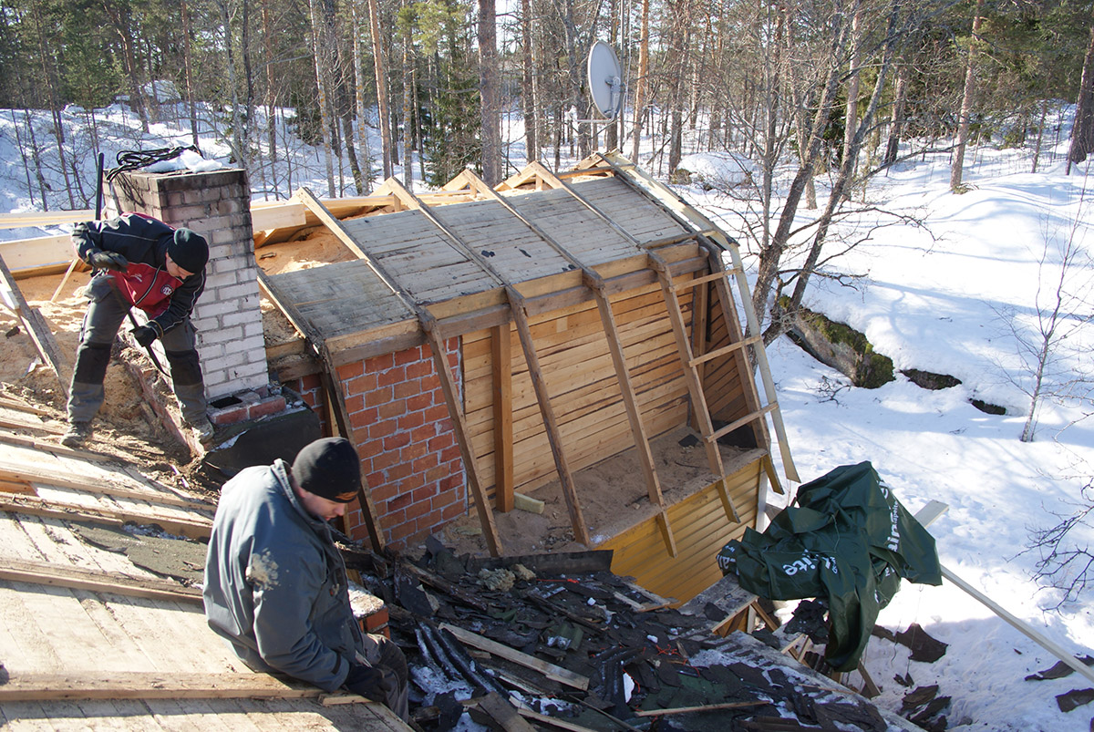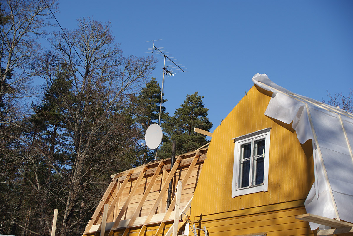 Kohde: Rivitalojen tasakattojen muutostyö harjakatoiksi (8 taloa)